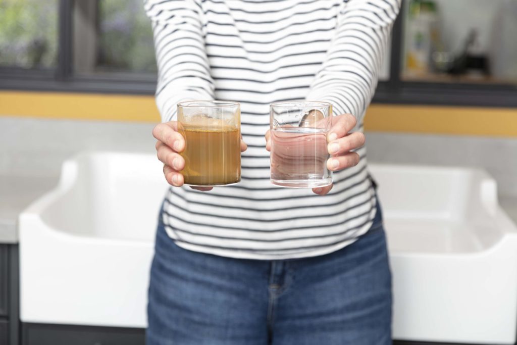 Mais si elle est potable à la sortie des stations de production, savez-vous qu’elle traverse ensuite des milliers de kilomètres de canalisations vétustes ? Conséquence : on trouve au robinet des traces de nitrates et de pesticides, des résidus médicamenteux, des virus, des perturbateurs endocriniens, des métaux lourds et même de l’arsenic et du plomb…
